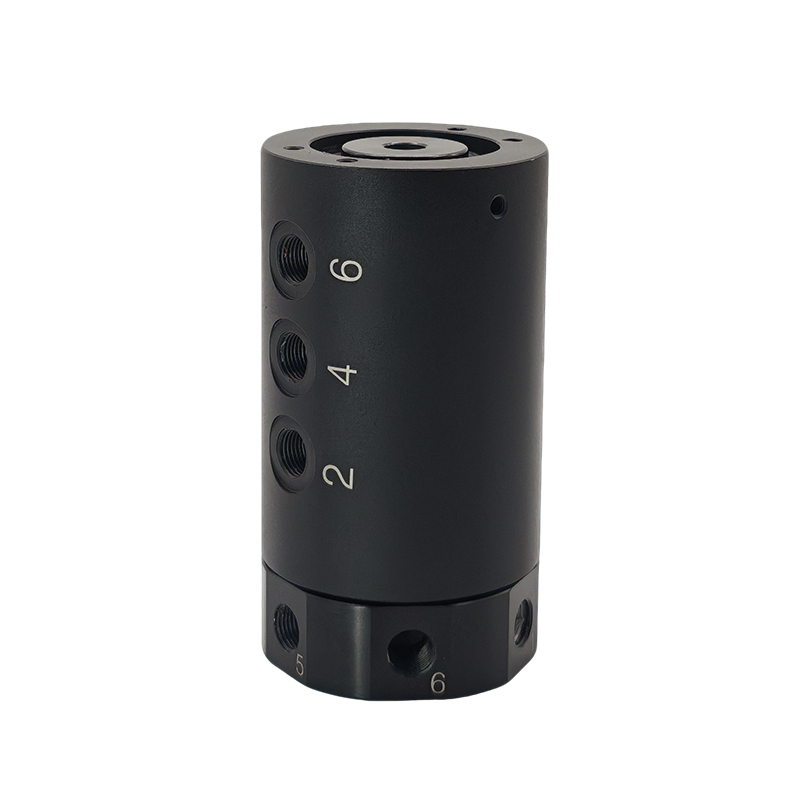 在设备旋转部分(如旋转工作台、机械臂末端、自动化流水线转盘)与固定气源之间建立通道,确保压缩空气、惰性气体或真空在旋转运动中不中断传输,保障设备的气动驱动、气动夹具、真空吸附等功能正常运行。