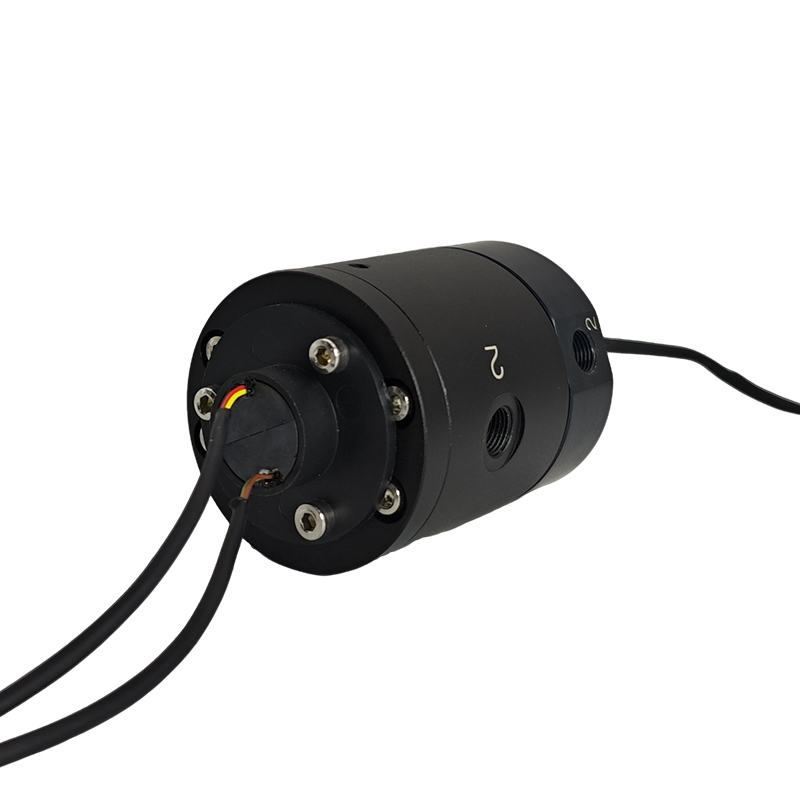 同步传输气体/与电力/信号,在设备旋转部分与固定部分之间建立双通道连接:传输气体如压缩空气、氮气、真空负压等,用于驱动气动元件(气缸、气动夹具)、吹扫清洁或真空吸附。